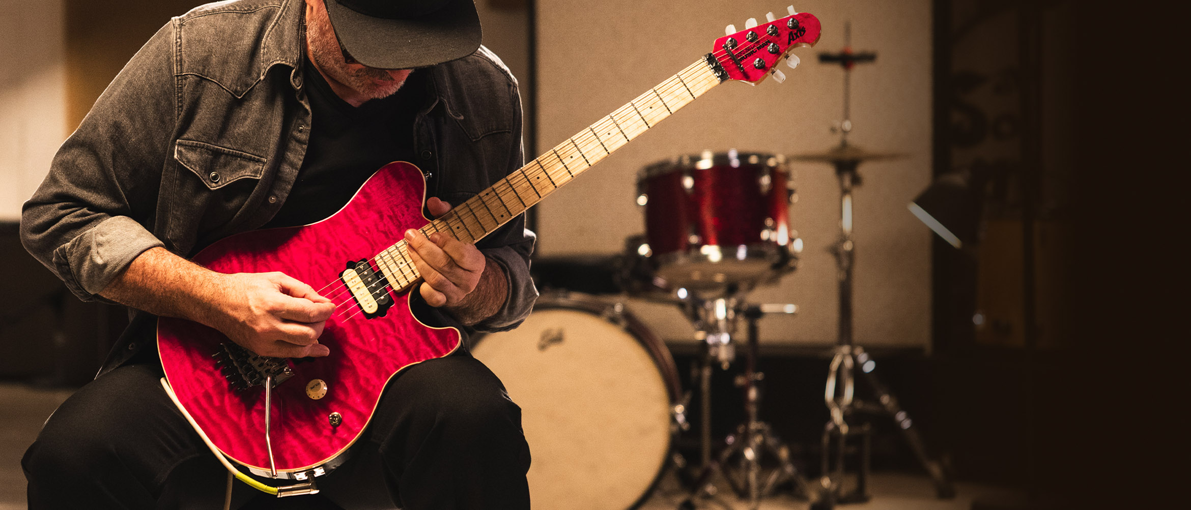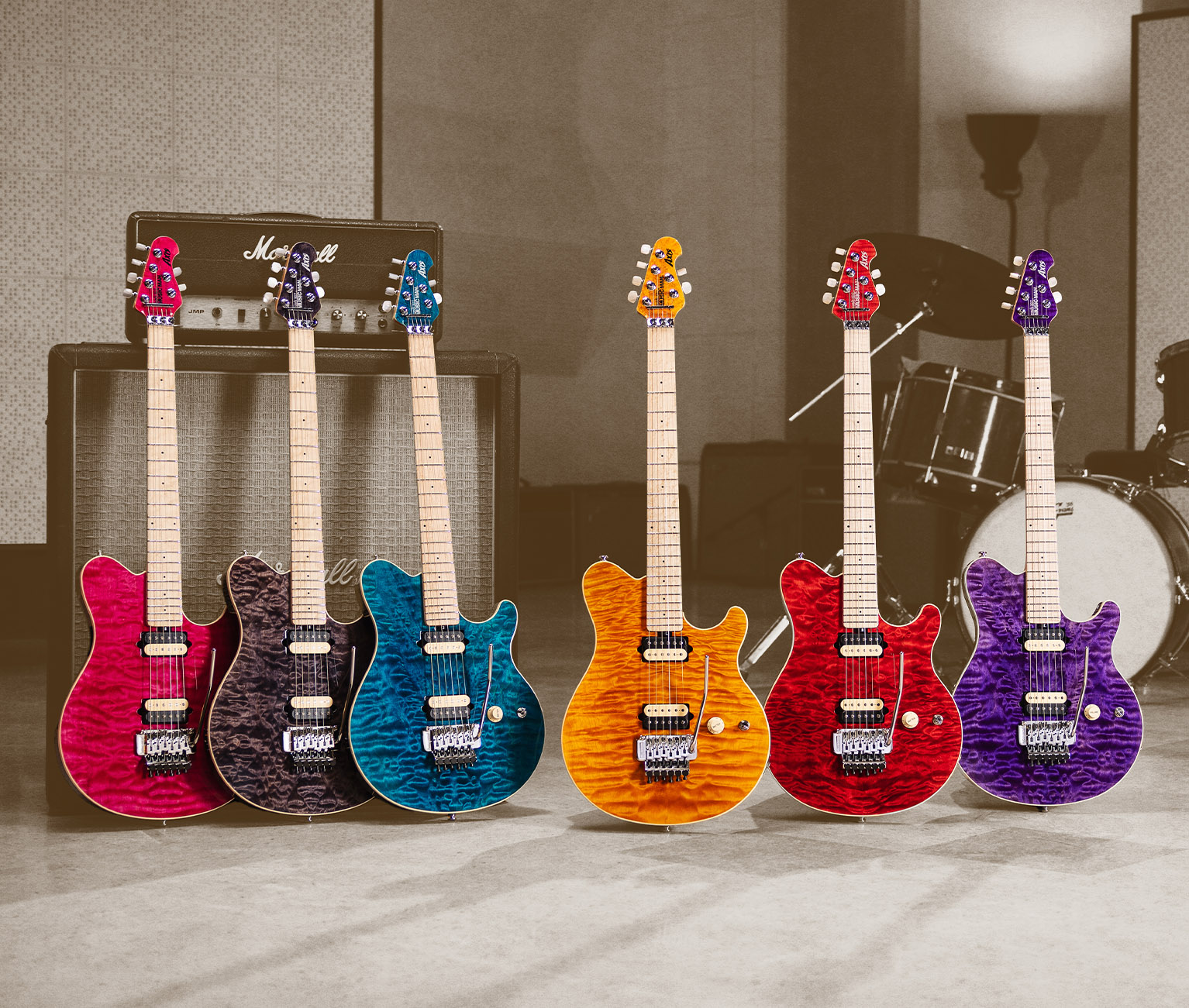 Celebrating 30 years of the Axis, this limited edition collection revisits the iconic translucent finishes of its 1996 debut. Each hand stained quilt maple top, available in Gold, Black, Pink, Red, Blue, and Purple, is paired with a black, lightly sparkled back that subtly echoes the top’s hue. Built to the original specs, these guitars feature the classic asymmetrical neck carve, 22 stainless steel frets, and glow in the dark side dots on a figured maple neck. Equipped with the legendary custom wound DiMarzio® pickups and finished with a color matched headstock and a commemorative 30th Anniversary logo, each instrument includes a certificate of authenticity and a deluxe hardshell case.
